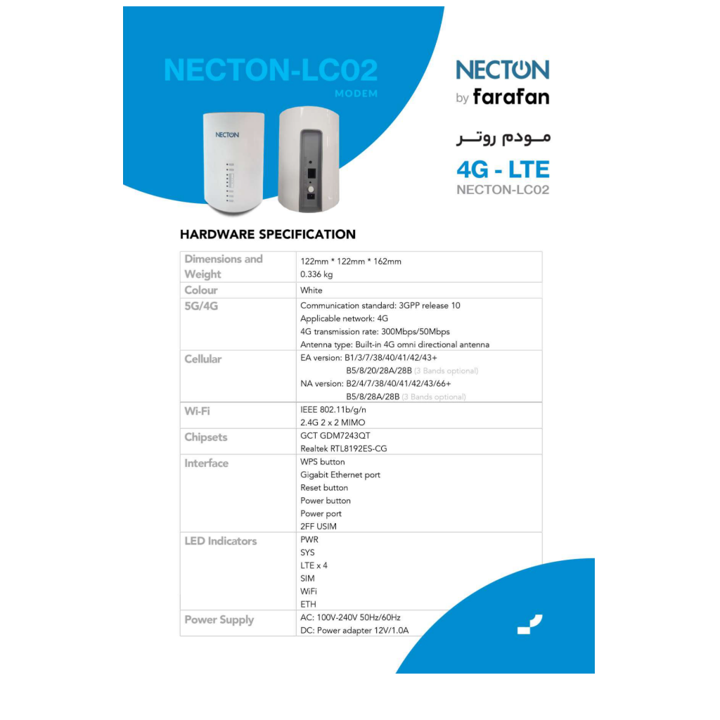 مودم 4.5G/TD-LTE رومیزی Necton مدل LC02 دستگاه بصورت ( OPEN BOX )