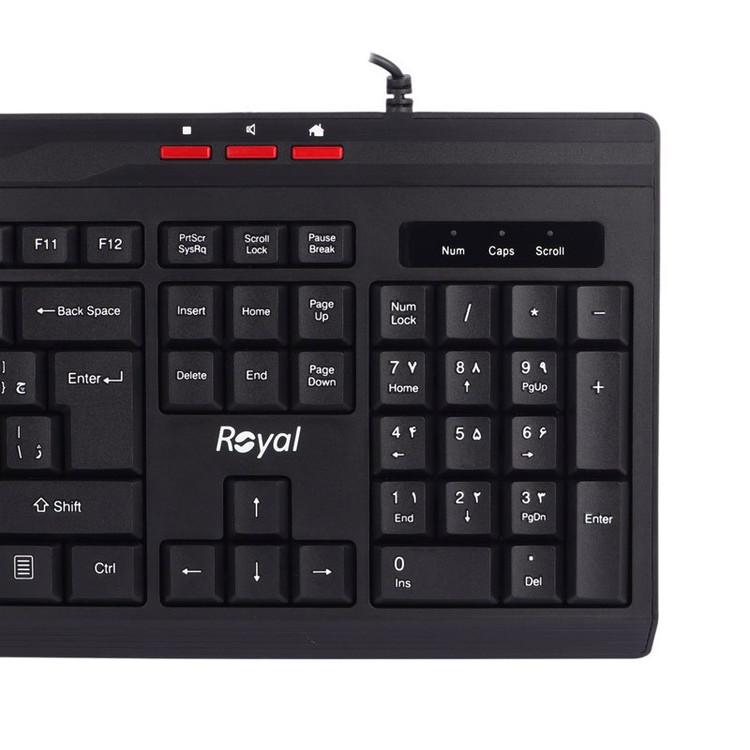 کیبورد Royal RK325 یک کیبورد سیمی با طراحی ارگونومیک و کلیدهای نرم است که برای کارهای اداری، تایپ حرفهای و استفاده روزمره طراحی شده است و یک گزینه قابلاعتماد و اقتصادی برای کسانی است که نیاز به یک کیبورد با سیم دارند.